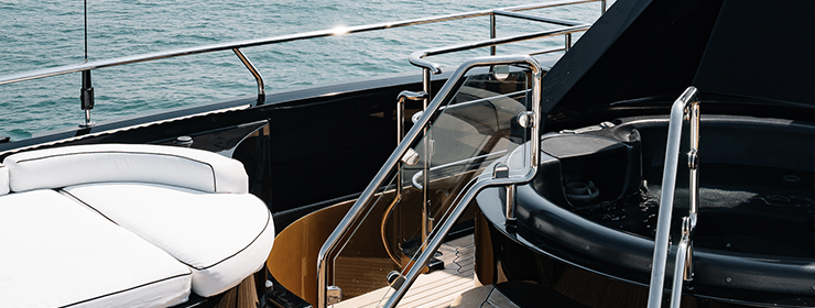 SUNDECK JACUZZIRelax in the jacuzzi on board, enjoying the stunning views of the open sea. |